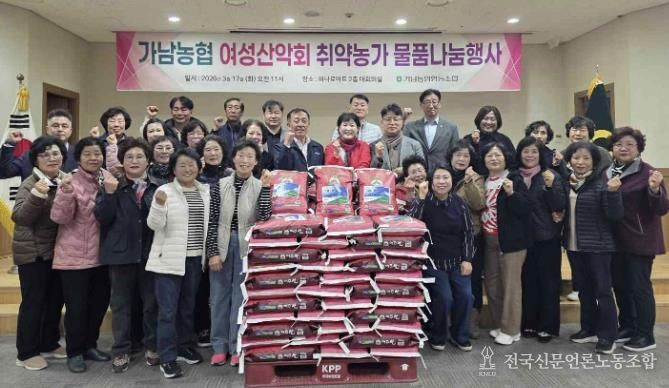 전국신문언론노동조합 김성길 기자 | 여주시 가남농협 여성산악회는 지난 17일, 관내 어려운 이웃을 위한 백미(10kg) 100포를 가남읍 행정복지센터에 기탁하며 따뜻한 나눔의 손길을 전했다.