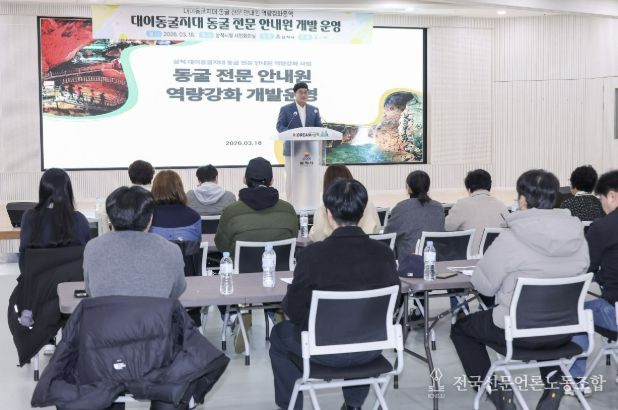 전국신문언론노동조합 강찬희 기자 | 삼척시는 18일 삼척시청에서 대이동굴관광센터 종사원을 대상으로 동굴 관광서비스 전문교육을 실시했다.