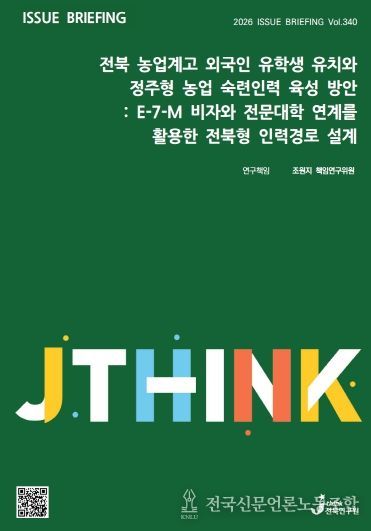 전국신문언론노동조합 강찬희 기자 | 전북연구원은 19일 농업계고 특성화고·마이스터고 외국인 유학생을 육성형 전문기술인력(E-7-M) 비자와 연계한 새로운 인력 양성 모델인 ‘전북형 농생명 숙련인력 패스웨이’를 제안했다.