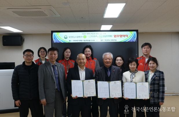 전국신문언론노동조합 김성길 기자 | 사회복지법인 한길복지재단은 3월 17일 한길학교 시청각실에서 정성영농조합법인, 농업회사법인 정선아라리(유)와 함께 사회적 약자의 자립 지원 및 일자리 창출을 위한 업무협약을 체결했다.