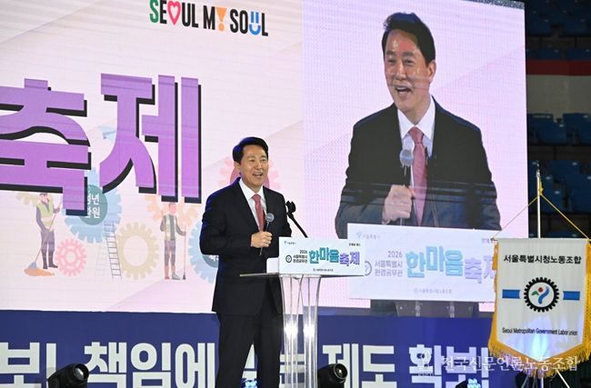 전국신문언론노동조합 강찬희 기자 | 오세훈 서울시장은 19일 오전 10시30분 잠실 학생체육관(송파구 잠실동 10)에서 열린 ‘2026 환경공무관 한마음축제’에 참석해 서울을 세계적인 청결도시로 만들어 준 노고에 감사를 전하고, 환경공무관의 작업환경과 안전을 확실히 챙겨 나가겠다고 약속했다.