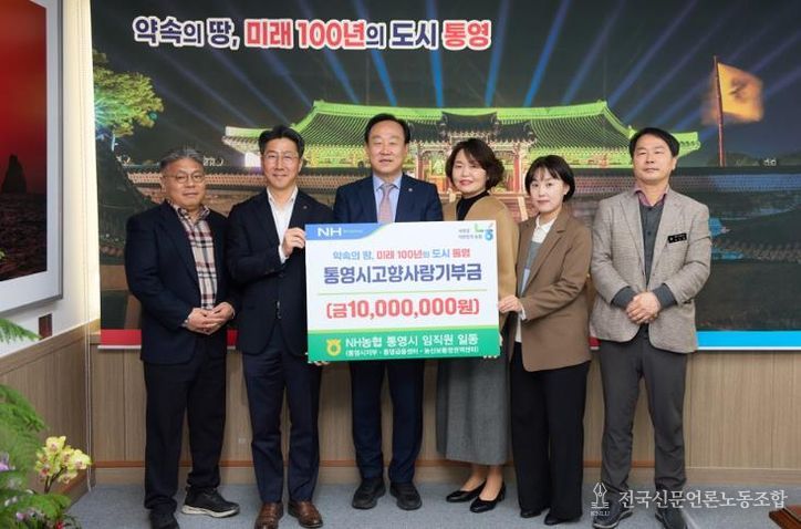 전국신문언론노동조합 강찬희 기자 | 통영시는 19일 관내 NH농협 임직원 일동이 고향사랑기부금 1,000만 원을 기부했다고 밝혔다.