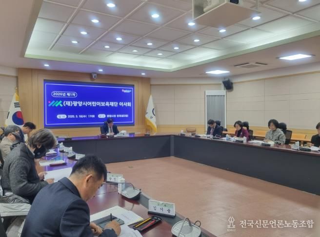 전국신문언론노동조합 강찬희 기자 | (재)광양시어린이보육재단은 지난 3월 18일 광양시청 창의실에서 2026년 제1차 이사회를 개최했다고 밝혔다.