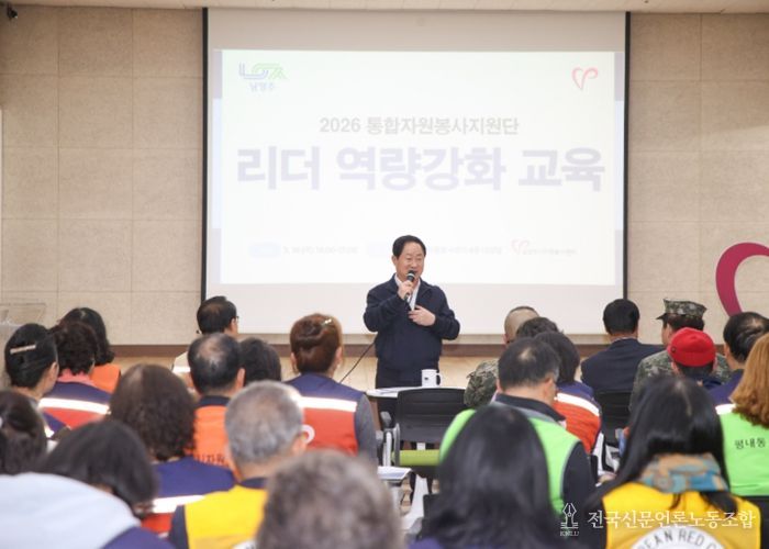 전국신문언론노동조합 김성길 기자 | 남양주시는 19일 사단법인 남양주시자원봉사센터 주관으로 ‘2026년 통합자원봉사지원단 리더 교육’을 실시했다고 밝혔다.