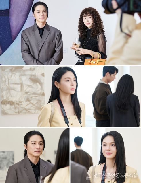그런가 하면 주세빈-송지인-지영산은 의미심장한 ‘폭풍 전야 쓰리샷’을 촬영하며 단단한 연기력의 환상적인 조화를 이뤄냈다. 주세빈은 프로페셔널한 기자의 모습과 함께 폴 김을 향해 의문의 호기심을 드러내는 금바라를, 송지인은 여유와 미묘한 도발이 뒤섞인 현란희의 표정을, 지영산은 묵묵하게 자신의 감정을 드러내지 않는 폴 김의 면면을 구현해 현장의 열기를 끌어올렸다.