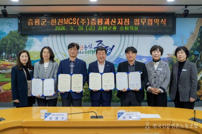 전국신문언론노동조합 김성길 기자 | 충북 증평군은 20일 군청 소회의실에서 한전MCS(주) 증평괴산지점과 지역 내 복지 사각지대 발굴과 산불 예방 감시 강화를 위한 업무협약(MOU)을 체결했다고 밝혔다.