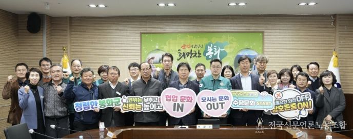 전국신문언론노동조합 강찬희 기자 | 봉화군은 조직 내 불필요한 관행을 개선하고 상호존중 기반의 건강한 공직문화를 정착하기 위해 ‘간부 모시는 날’ 근절 캠페인을 추진했다고 밝혔다.