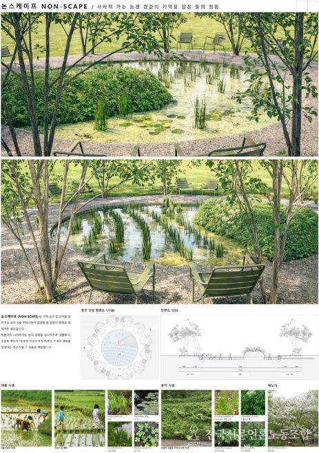 선정된 작품은 △박희수 작가의 ‘오월愛 Recipe’ △윤옥란 작가의 ‘오월의 레시피: 위로를 굽는 정원’ △김기한 작가의 ‘논스케이프(NON-SCAPE)’ △이민우 작가의 ‘Blending Garden’ △석주원 작가의 ‘지맥정원(地脈庭園)’ △고규영 작가의 ‘미호강 소로리 볍씨의 선물’이다.