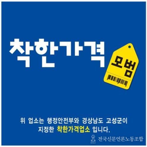 전국신문언론노동조합 강찬희 기자 | 고성군은 지역 물가 안정과 서민경제 부담 완화에 기여하고 있는 ‘착한가격업소’를 4월 17일까지 신규모집 한다고 밝혔다.