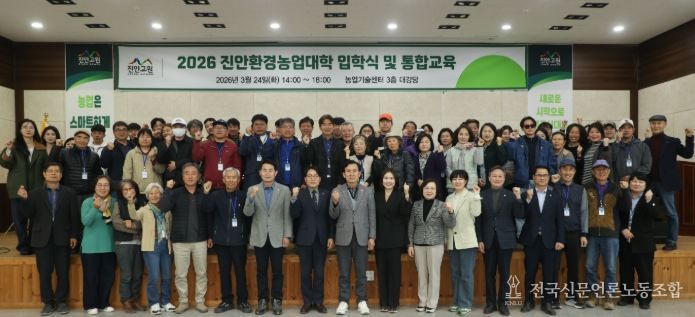 전국신문언론노동조합 강찬희 기자 | 진안군은 지역 농업을 선도할 전문 인력 양성을 위해 24일 '진안환경농업대학 입학식'을 개최하고 본격적인 교육 운영에 들어갔다.