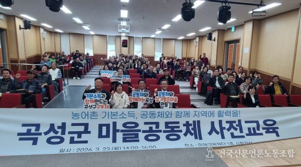 전국신문언론노동조합 강찬희 기자 | 전남 곡성군은 지난 23일 곡성미래교육재단 시청각실에서 ‘2026년 마을공동체 지원사업’에 선정된 마을공동체 대표자와 실무자 100여 명을 대상으로 사전교육을 개최했다고 밝혔다.