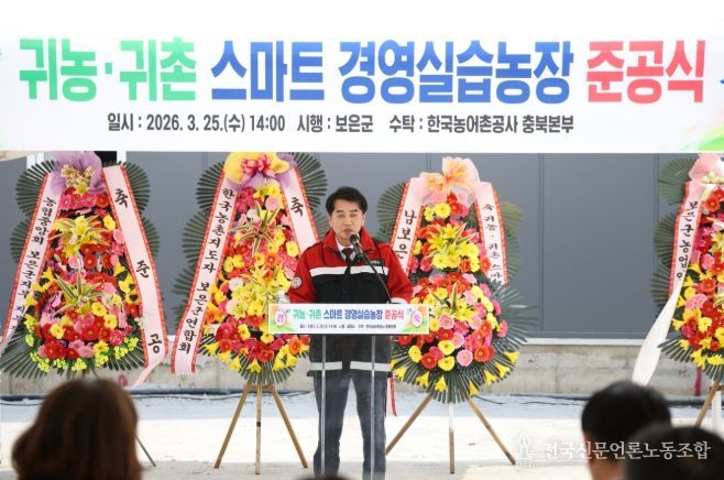 전국신문언론노동조합 김성길 기자 | 충북 보은군은 25일 탄부면 임한리 일원에서 ‘귀농·귀촌 스마트 경영실습농장’ 준공식을 개최하고, 스마트농업 확산과 청년농업인 육성을 위한 기반을 마련했다.