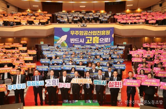 전국신문언론노동조합 강찬희 기자 | 고흥군은 25일 고흥문화회관에서 군민과 유관기관, 산·학·연 관계자 등이 참석한 가운데 ‘우주항공복합도시 조성 결의대회 및 포럼’을 개최하고, 우주항공복합도시 특별법 제정과 우주항공산업진흥원 고흥 유치에 대한 군민과 지역사회의 의지를 결집했다.