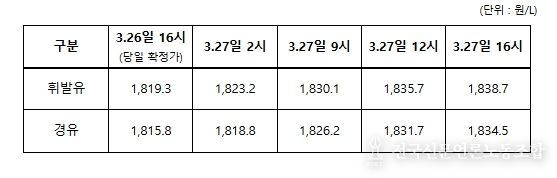 전국신문언론노동조합 강찬희 기자 | 정부는 3월 27일 00시부터 정유사 출고물량에 대해 2차 석유 최고가격을 시행했다.