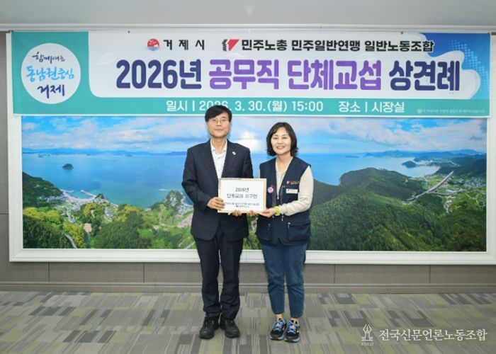 전국신문언론노동조합 강찬희 기자 | 거제시는 3월 30일 시장실에서 민주노총 민주일반연맹 일반노동조합과 2026년 단체교섭을 위한 상견례를 개최했다고 밝혔다.