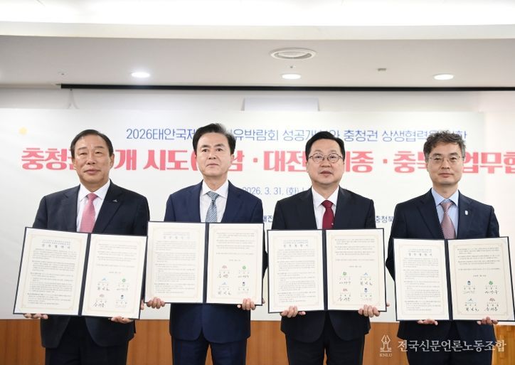 이장우 대전시장은 “이번 협약은 충청권이 하나로 힘을 모아 상생발전의 기반을 다지는 계기가 될 것”이라며 “각 시·도 간 긴밀한 협력을 통해 지역의 관광·농업 자원을 연계하고, 실질적인 지역경제 활성화로 이어질 수 있도록 적극 노력하겠다”라고 화답했다.