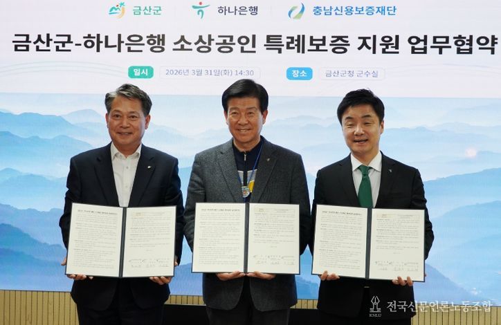 전국신문언론노동조합 강찬희 기자 | 충남신용보증재단이 금산군, 하나은행과 손잡고 금산군 소상공인 특례보증의 추가 지원에 나선다.