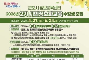전국신문언론노동조합 김성길 기자 | 군포시는 시민들의 정보화 시대에 대한 적응 능력 향상 및 정보 소외 계층의 디지털 격차 해소를 위해 운영되는 ‘2026년 2기 시민정보화교육’의 수강생을 오는 4월 8일부터 4월 12일까지 모집한다고 밝혔다.