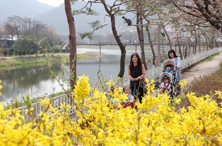 전국신문언론노동조합 김성길 기자 | 충북 괴산군 괴산읍 동진천변 산책로에 봄꽃이 피어 나들이객들의 발길이 이어지고 있다.