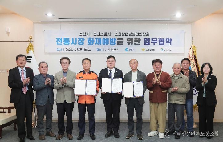 춘천시는 3일 시청 접견실에서 춘천소방서, (사)춘천상업경영인연합회와 전통시장 화재예방 업무협약을 체결했다.