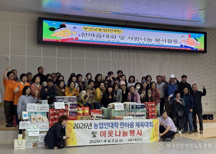 전국신문언론노동조합 강찬희 기자 | 부안군농업기술센터(소장 김양녕)는 지난 3일 대강당에서 농업인대학 한마음 대회 및 이웃사랑 나눔 봉사활동을 진행했다고 밝혔다.