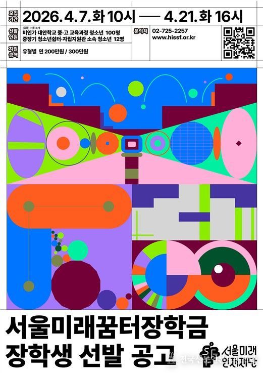 전국신문언론노동조합 강찬희 기자 | 서울미래인재재단은 기존 서울꿈길장학금의 지원 대상을 확대하고 유형을 세분화하여 ‘서울미래꿈터장학금’을 신설한다. 재단은 비인가 대안학교 재학생은 물론 가정 밖 청소년까지 총 112명을 선발하고, 총 2억 3,600만 원 규모의 학업 장려금을 지원할 계획이다.