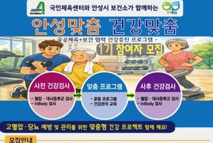 전국신문언론노동조합 김성길 기자 | 안성시시설관리공단 국민체육센터는 안성시 보건소와 협력하여 안성시민 건강증진을 위한 '안성맞춤 건강맞춤' 프로그램 참여자 30명을 모집한다고 밝혔다.