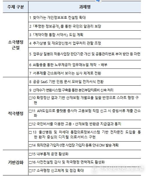 전국신문언론노동조합 강찬희 기자 | 근로복지공단(이사장 박종길)은'2026년 적극행정 실천과제'17건을 선정하고, 국민 불편 해소를 위한 현장 중심의 업무처리 절차 개선을 본격 추진한다고 밝혔다.
