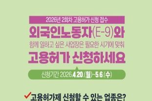 프레스유니온 강찬희 기자 | 고용노동부는 4월 20일부터 5월 6일까지 전국 지방고용노동관서를 통해 2026년도 2회차 외국인노동자(E-9) 신규 고용허가 신청을 받는다고 밝혔다.