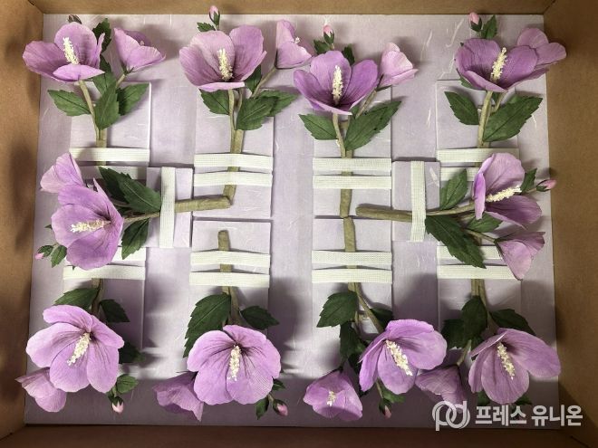 본 서비스는 2023년 11월 한지 무궁화 코르사주 150개 제작을 기점으로 시작됐으며, 이후 매년 150개씩 정기적으로 제작하며 서비스를 이어오고 있습니다. 무궁화 한지 코르사주는 사계절 내내 무궁화의 아름다움을 감상할 수 있도록 한지에 여러 번의 염색과 채색하는 과정을 거쳐 무궁화의 빛깔에 가장 가깝게 표현했다.