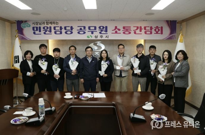 프레스유니온 강찬희 기자 | 상주시는 4월 10일 시청 소회의실에서 2026년 1분기 민원처리 우수 공무원 시상식과 함께 민원담당공무원들과의 소통 간담회를 개최했다.