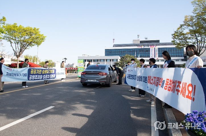 프레스유니온 강찬희 기자 | 구미시는 13일 오전 8시 30분 시청 입구에서 출근길 직원과 시민들을 대상으로 에너지 절약 실천을 위한 ‘공공기관 승용차 2부제 및 공영주차장 5부제’ 동참 캠페인을 펼쳤다.