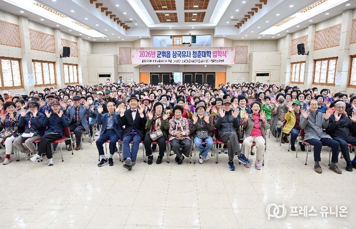 프레스유니온 강찬희 기자 | 군위군은 14일 군위읍을 시작으로 이재성 군위군수 권한대행, 노인회 관계자, 학생 2,000여 명이 참석한 가운데 2026년 삼국유사 청춘대학 입학식을 성황리에 개최했다.