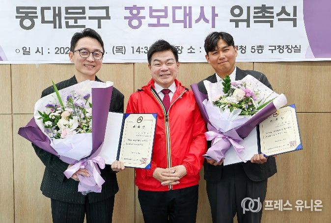 프레스유니온 강찬희 기자 | 서울 동대문구는 16일 AI·인지과학 전문가 김상균 교수와 지역 콘텐츠 인플루언서 ‘동대문가이드’ 운영자 장영수 대표를 홍보대사로 신규 위촉했다.