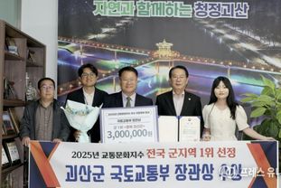 프레스유니온 김성길 기자 | 충북 괴산군은 한국교통안전공단 상주교통안전체험교육센터에서 열린 교통문화지수 우수‧개선 지방정부 시상식에서 국토교통부 장관상을 수상했다고 17일 밝혔다.