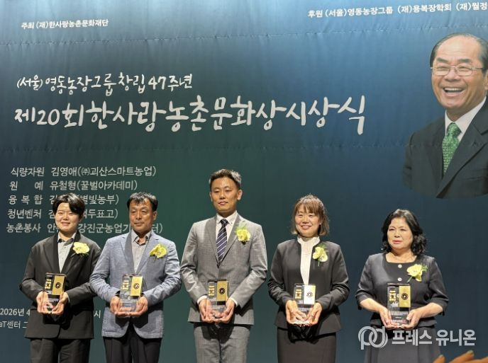 프레스유니온 김성길 기자 | 충북 괴산군은 지난 16일 (재)한사랑농촌문화재단이 주관하는 ‘제20회 한사랑농촌문화상’을 ㈜괴산스마트농업 김영애 대표가 수상했다고 밝혔다.