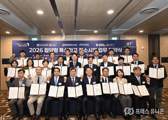 도는 17일 전주 라한호텔에서 김종훈 경제부지사와 유정기 교육감 권한대행을 비롯해 시군, 기업, 학교 등 30여 개 기관이 참여한 가운데 ‘2026년 협약형 특성화고 컨소시엄 업무협약’을 체결했다.