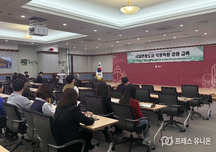 프레스유니온 강찬희 기자 | 강릉시는 ‘2026~2027 강릉방문의 해’의 성공적 추진과 글로벌 관광 도시 도약을 위해, 골목길 경제학자로 알려진 모종린 교수를 명사로 초청해 17일 시청 대회의실에서 직원역량강화 교육을 실시했다.