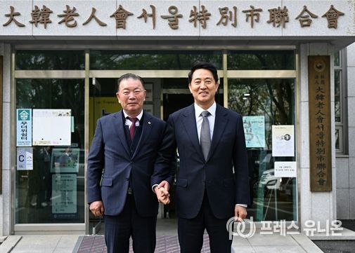 프레스유니온 강찬희 기자 | 오세훈 서울시장은 17일 오후 3시 30분, 용산구에 위치한 대한노인회 서울시연합회를 방문해 어르신 활력증진과 초고령사회에 대응하기 위한 업무협약을 체결하고, 양 기관의 협력 방안을 논의했다.