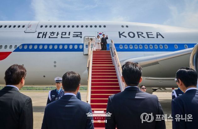 프레스유니온 강찬희 기자 | 이재명 대통령과 김혜경 여사는 5박 6일 일정의 인도 및 베트남 국빈 방문을 위해 19일 경기 성남 서울공항에서 대통령 전용기(공군 1호기)를 이용해 출국했다.