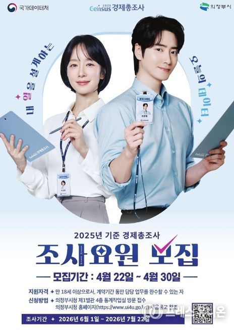 프레스유니온 김성길 기자 | 의정부시는 6월 1일부터 실시되는 ‘2025년 기준 경제총조사’의 원활한 추진을 위해 조사요원 77명을 모집한다.