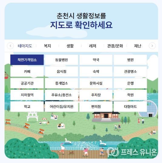 프레스유니온 강찬희 기자 | 춘천시가 생활안내지도를 활용해 착한가격업소를 한눈에 확인할 수 있는 서비스를 시작한다.