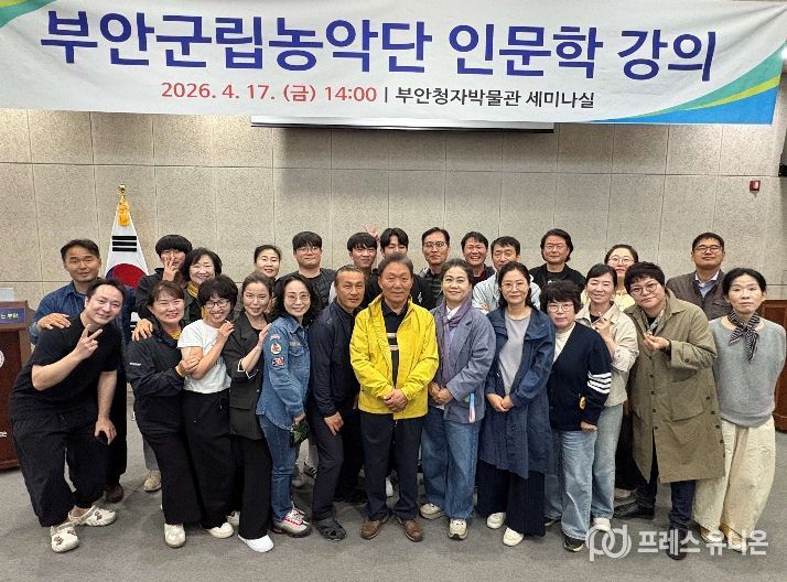 프레스유니온 강찬희 기자 | 부안군은 지난 17일 부안청자박물관 세미나실에서 군립농악단 단원을 대상으로 부안의 역사·문화 이해를 위한 인문학 강의를 성황리에 마무리했다고 밝혔다.