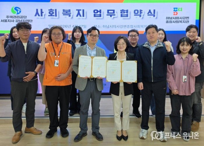 프레스유니온 김성길 기자 | 하남시미사강변종합사회복지관은 지역 내 취약계층의 생활 안정과 자립 지원을 위해 4월 17일, 주택관리공단 서울지사 강남지역단과 업무협약을 체결했다.