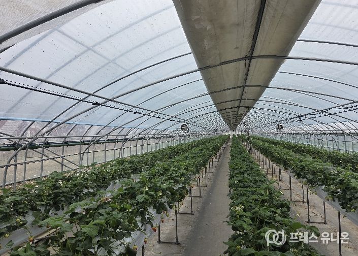프레스유니온 강찬희 기자 | 금산군농업기술센터는 평균기온 상승으로 어려움을 겪고 있는 관내 딸기 재배농가 2곳을 대상으로 고온 대응 에어포그 시스템 지원에 나선다.