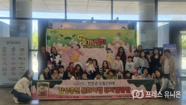 프레스유니온 강찬희 기자 | 지난 18일 진안군 드림스타트 아동 및 부모 30여명이 한국 소리문화의 전당에서 가족 뮤지컬 ‘호기심딱지’를 관람했다. 이번 뮤지컬 관람은 지리적 여건 및 가정 형편상 문화체험의 기회가 부족한 아이들에게 가족과 함께하는 문화적 경험과 유대감을 쌓을 수 있도록 마련됐다.