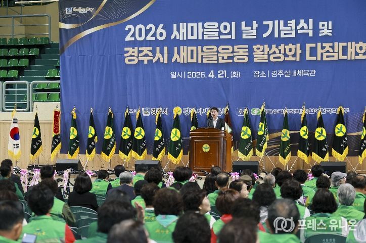 프레스유니온 강찬희 기자 | 경주시새마을회(회장 박정원)는 21일 황성공원 실내체육관에서 ‘새마을운동 제창 56주년 제16회 새마을의 날 기념식 및 2026 경주시 새마을운동 활성화 다짐대회’를 개최했다.