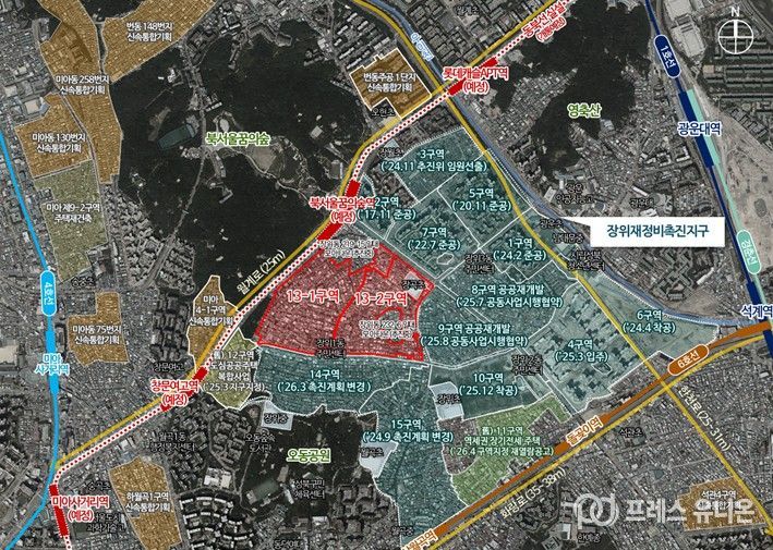 프레스유니온 강찬희 기자 | 서울시가 장위 재정비촉진지구의 마지막 남은 재개발 지역인 ‘장위동 219-90 일대(13-1구역), 장위동 224-12 일대(13-2구역)’의 신속통합기획을 확정(5,900세대 내외 규모, 13-1구역 : 3,400세대, 13-2구역 : 2,500세대)했다. 이로써, 장위 재정비촉진지구 전체의 재정비촉진계획 수립이 완료되어, 장위동 일대가 하나의 생활권으로 연결된 도시 구조로 재편돼 주민의 생활 여건이 한층 개선될 것으로 기대된다.