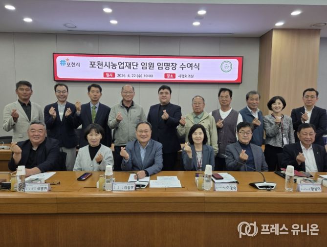 프레스유니온 김성길 기자 | 재단법인 포천시농업재단은 4월 22일 공개모집 절차를 통해 선발된 비상임 이사 및 감사 13명을 대상으로 임명장 수여식 개최하고 2028년까지 운영되는 제3대 이사회 출범을 알렸다.