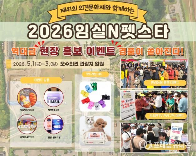 프레스유니온 강찬희 기자 | 임실군이 오는 5월 1일부터 3일까지 임실 오수의견관광지에서 열리는 제41회 의견문화제와 함께하는‘2026 임실N펫스타’에서 반려견과 함께하는 방문객을 위한 맞춤형 현장 이벤트를 선보인다.